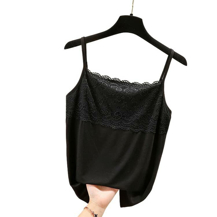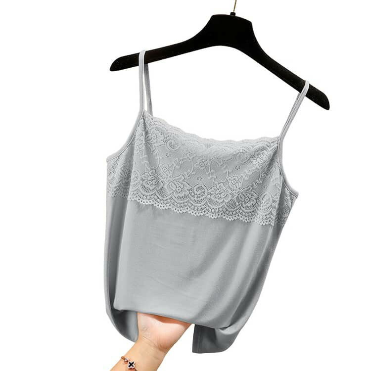 胸元の繊細なレースが上品で、シンプルながらもおしゃれな印象を与えます。
