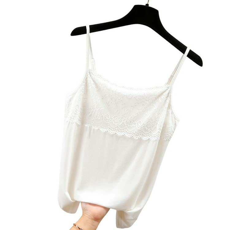 キャミソール レース カップなし レースキャミソール 胸元レース 細ストラップ スクエアネック ストレッチ 伸縮性 フィット レディース インナー 下着 透けない おしゃれ 白 インナーキャミ 大 黒