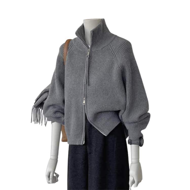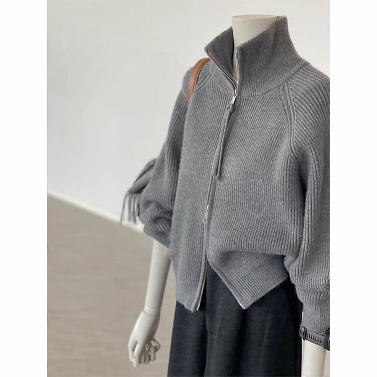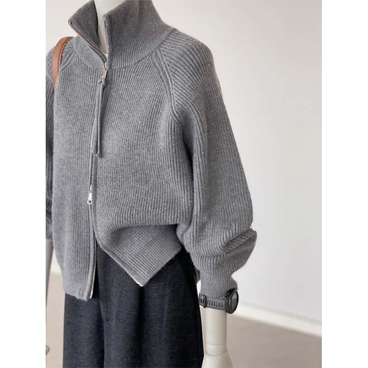 ニット ハイネック ニットカーディガン ジップアップ レディース ダブル ゆったり カーディガン ルーズシルエット カジュアル ダブルジップ セーター 大人
