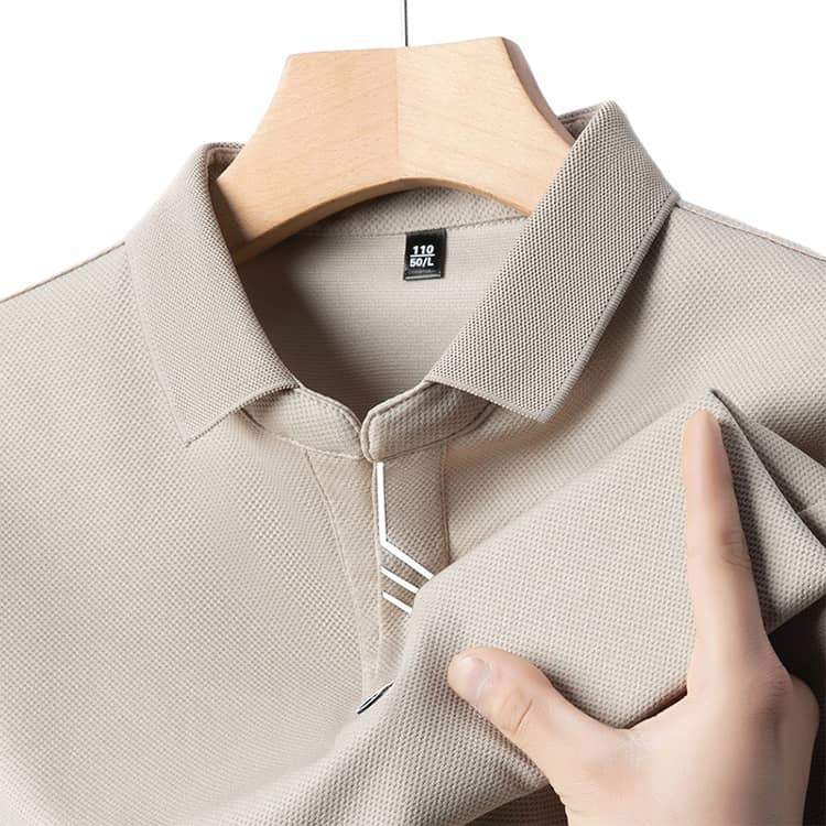 ワッフル調素材が特徴で、吸汗速乾機能が優れており、ゴルフやビジネス、カジュアルコーディネートにも最適です。