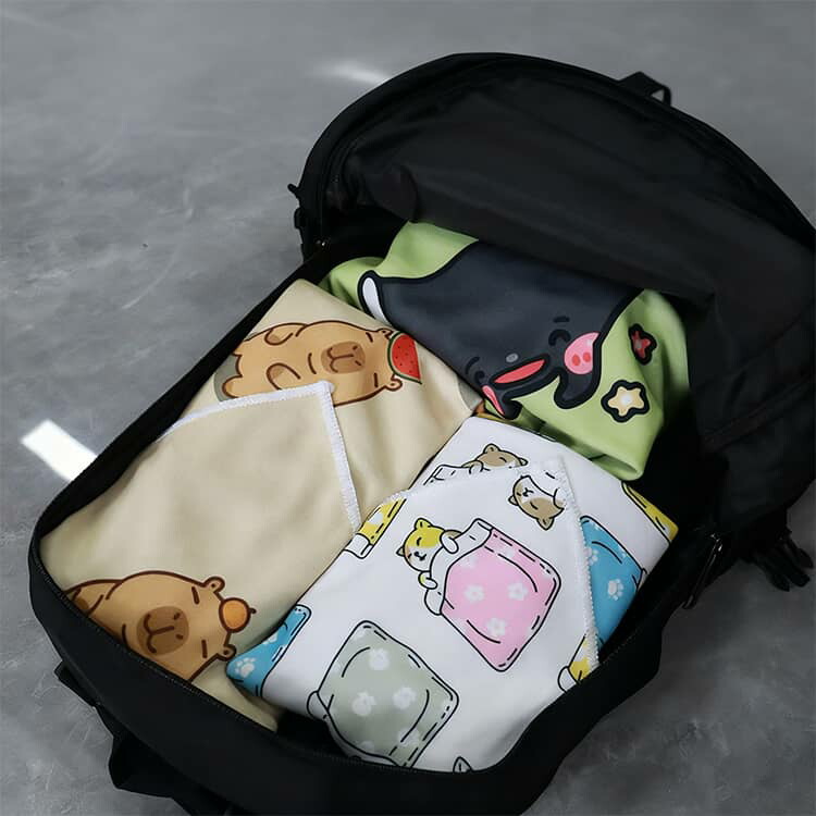 吸水性もあり、折り畳み傘やペットボトルなどそのままバッグに入れたくない物もくるむだけでバッグに入れてOKです。