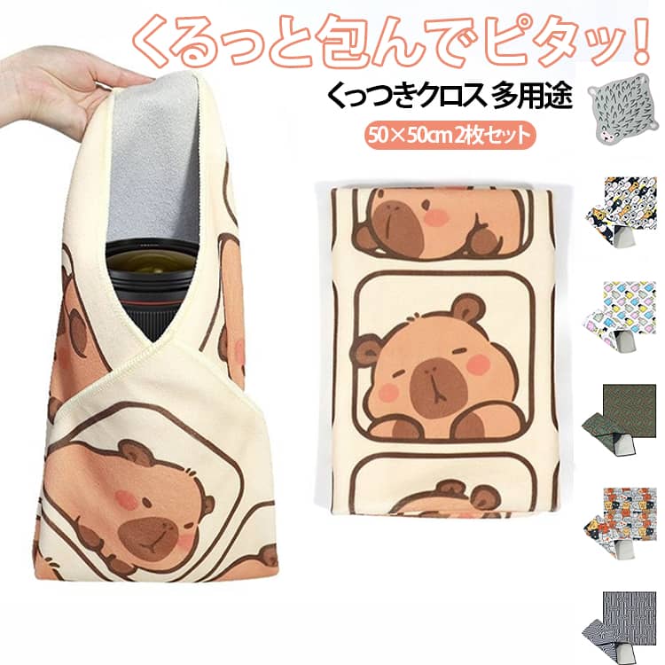 くっつきタオル 吸水 包むだけ 開かない 軽量 マジッククリーナークロス 風呂敷 ラッピングクロス タオル くっつくクロス 50×50cm カメララップ マルチラップクロス お弁当袋 ラ ラップクロス