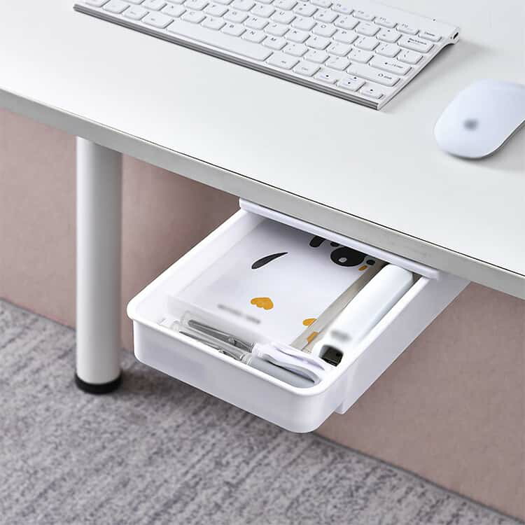 デスク下引き出し 後付け引き出し 机下収納 リモコン 引き出し 収納ボックス 取り付け式 小物入れ ワンタッチ デスク収納 テーブル下収納 メガネ コスメ 小物整理 文房具収納 隠 工具不要