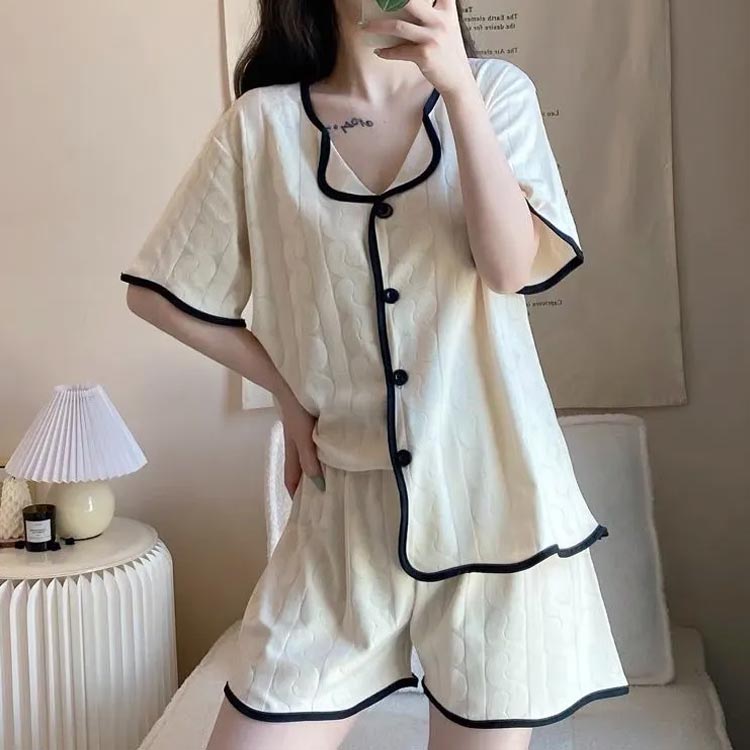 伸縮性 夏 パジャマ ルームウェア レ レディース ナイトウェア ルームウェア パジャマ 続々登場 ベージュ(上下セット) グレーブルー(上下セット) M L XL 2XL