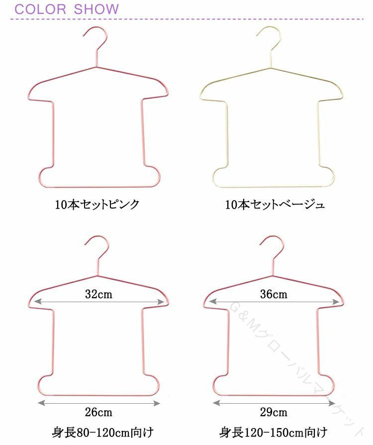 子供用ハンガー キッズ衣類収納 ジャケ 洗濯用品 物干しハンガー 豊富な品揃え 10本セットベージュ 10本セットピンク 身長80-120cm向け 身長120-150cm向け
