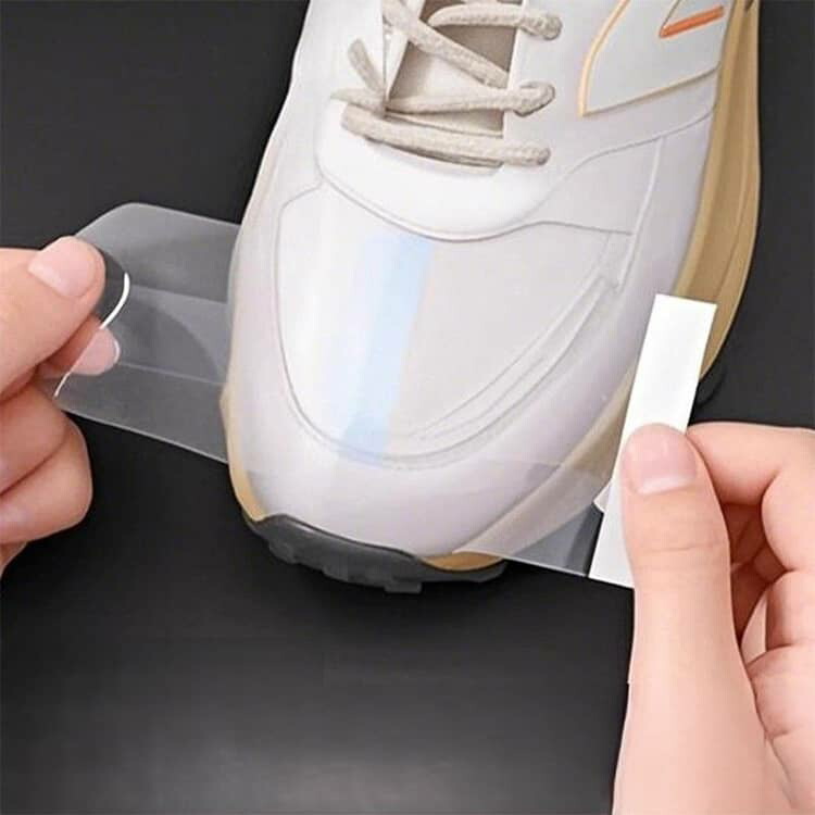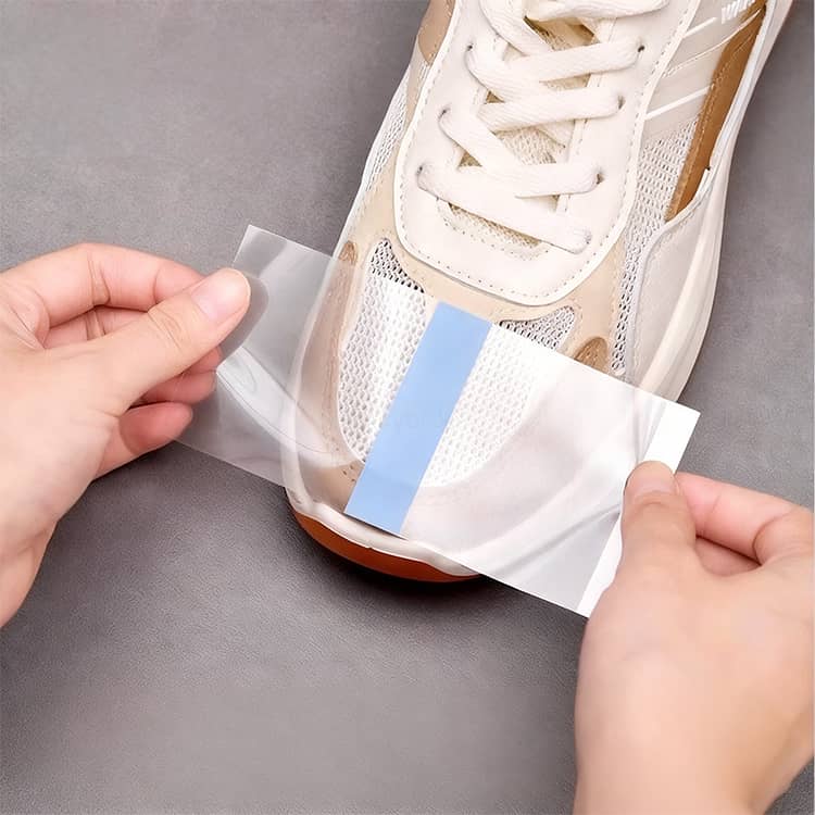 極薄フィルムが靴にしっかり密着し、剥がした後もベタつきや接着剤の痕が残りません。