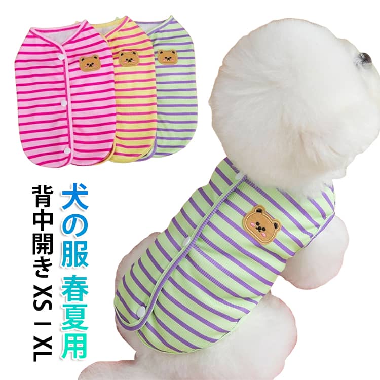 犬 服 春夏 犬の服 かわいい おしゃれ tシャツ ベスト ボーダー柄 ドッグウェア 背中開き 猫 小型犬 中型犬 部屋着 ルームウェア 日焼け止め 室内 お出かけ 散歩 脱毛保護