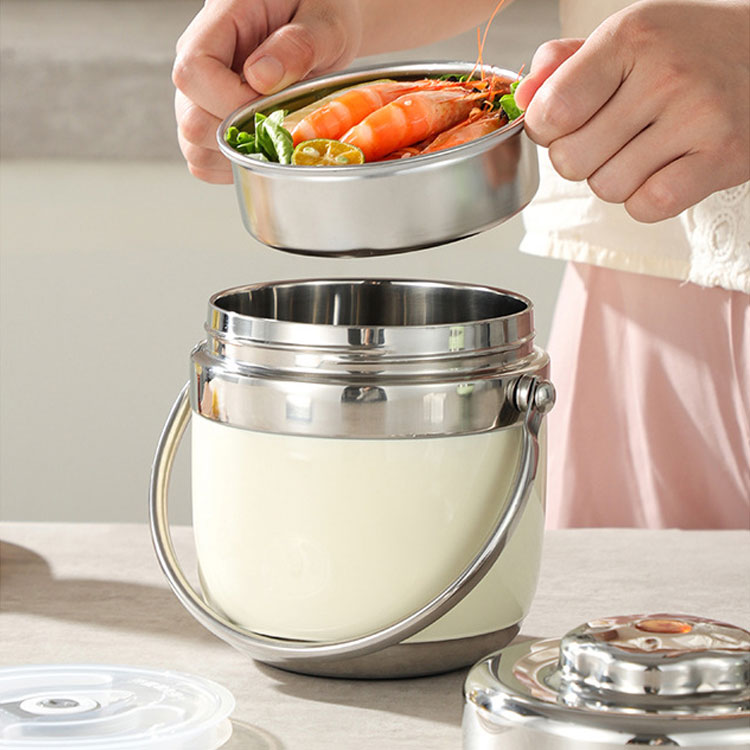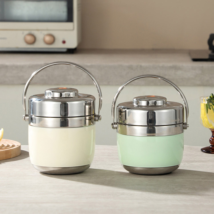 縦型 ランチボックス 1500ml 二 弁当箱 水筒 保温ランチジャー 人気 ベージュ(保温袋付) グリーン(保温袋付) 1200ML 1500ML
