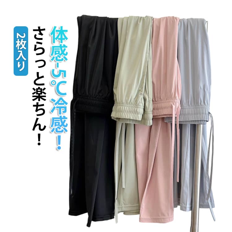 ボトムス UVカット99% レディース 2枚入り 速乾 接触冷感 冷感 ワイドパンツ 長ズボン パンツ ドライロングパンツ ヨガパンツ ロングパンツ 吸水速 uv