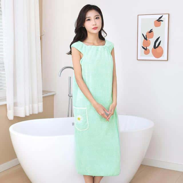 【優しい肌触り】マイクロファイバー素材を採用され、着心地がいい、柔らかい肌触りを持つラップタオルです。すべすべの肌触り、超低摩擦で肌を刺激せず、お風呂上がりの身体を優しく包み込みます。