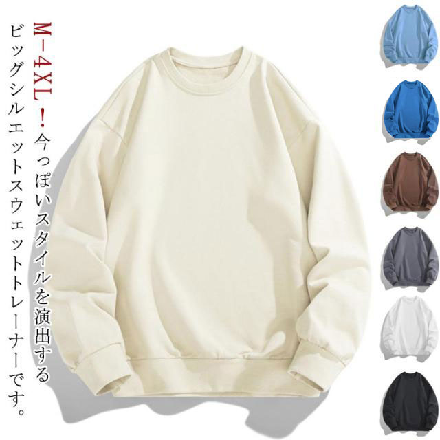 スウェット メンズ レディース トレーナー 長袖 シャツ 無地 トップス ビッグシルエット オーバーサイズ ホワイト グレー ブラック ベージュ ライトブルー コーヒー ブルー