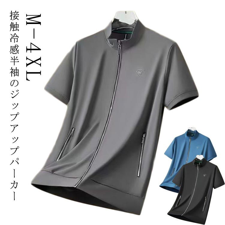 夏アウター 涼しい ブルゾン メンズ 冷感 ジップアップ 紳士服 半袖ジャケット 立ち襟 薄手 ゴルフ 吸汗速乾 スタンドカラー 大きいサイズ ウェア ビジネス スポーツ アウ ストレッチ