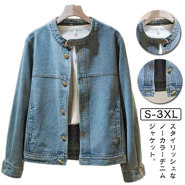 ノーカラー レディース 春用 秋用 Gジャン デニムジャケット ライトアウタージャケット アウター カジュアル ジャケット 大きい 羽織り