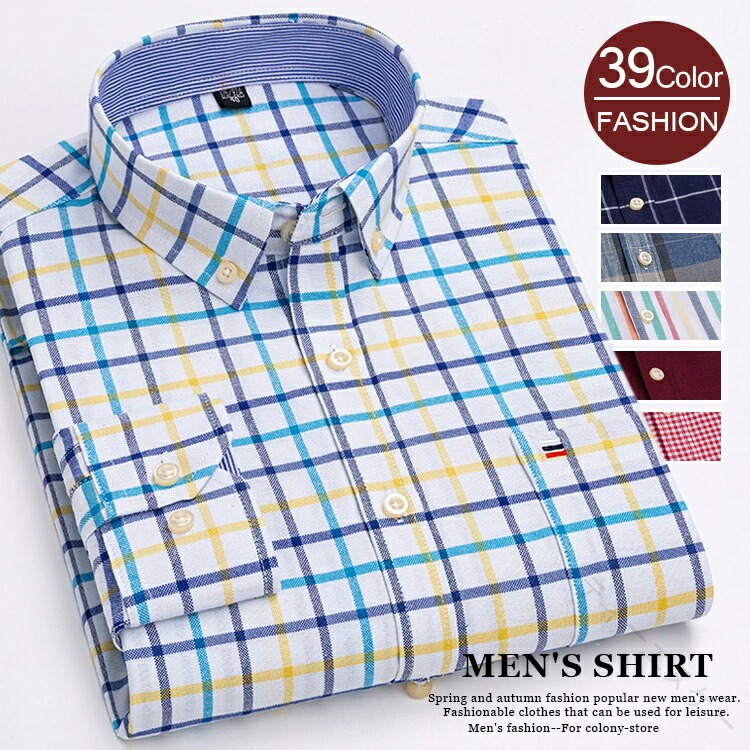 メンズ シャツ カジュアルシャツ 長袖 ボタンダウン ワイシャツ 大きいサイズ ストライプシャツ チェックシャツ オックスフォードシャツ 綿 100% 細身 ワークシャツ トップス おしゃれ スリム