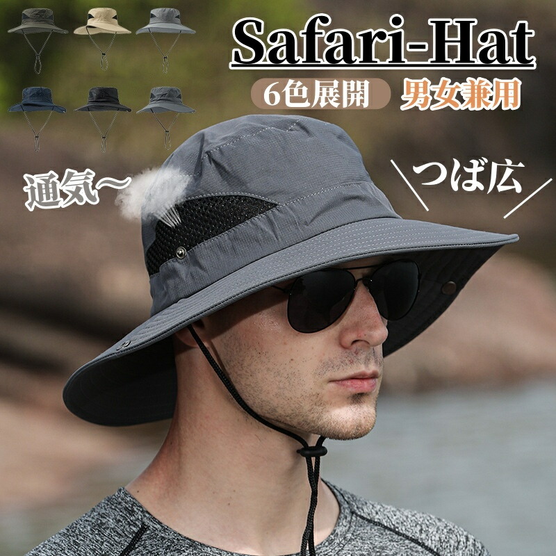 サファリハット メンズ 日よけ帽子 サンバイザー 帽子 あご紐付き サンキャップ レディース 大きいサイズ UV つば広 男女兼用 アウトドア ハット 日焼け防止 折りたたみ UVカット 農 調節可能