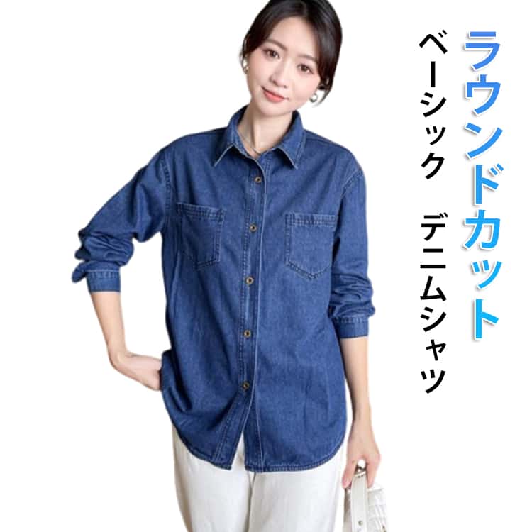 デニムシャツ レギュラーカラー レディース トップス デニム 長袖 シャツ ラウンドカット ゆったり 着瘦せ 体型カバー 大きいサイズ 春 夏 秋 薄手 アウター 羽織 おしゃれ かわいい ジャケット
