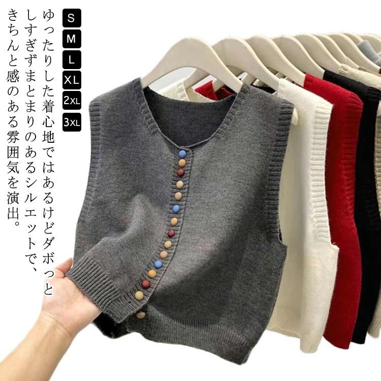レディース 前開き ニットベスト きれいめ ゆったり ノースリーブ 春秋 重ね着 カーディガン シンプル 大人 カジュアル 体型カバー 無地