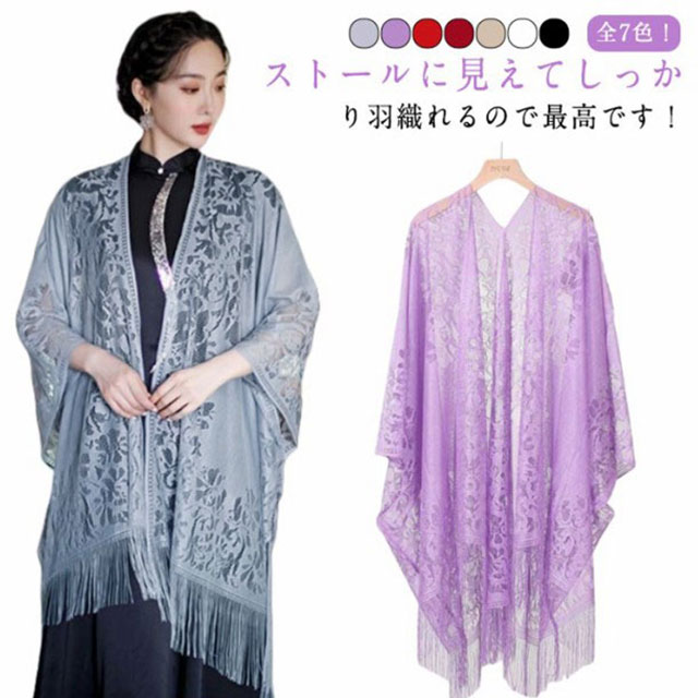 ストールに見えてしっかり羽織れるので最高です!ストール レディース 総レース 肩掛け カーディガン ショール 冷房対策 マフラー エレガント 大判 オールシーズン