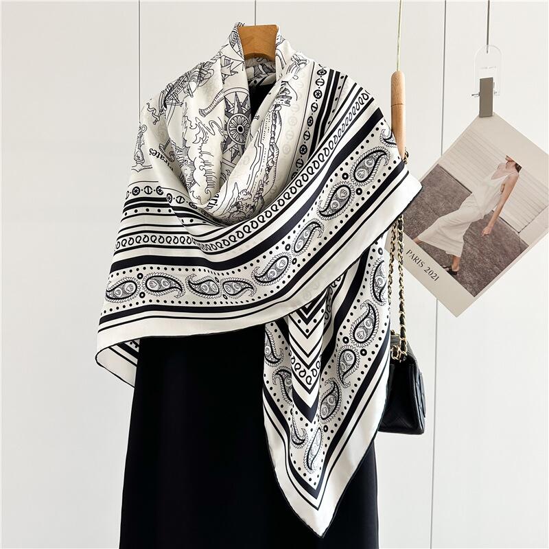 春夏 レディース 大人 ストール スカーフ おしゃれ ペイズリ柄 モノトーン バイカラー バンダナ柄 高級 大判ストール 大判スカー 上質