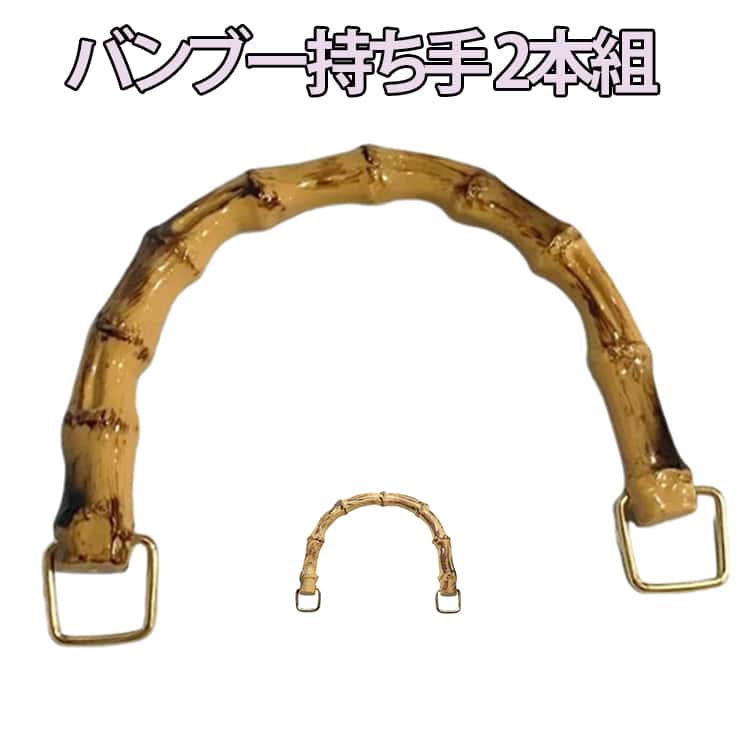 竹ハンドル 交換用 バックハンドル 持ち手 2本組 バンブー ハンドメイド 金具付き バッグ 取っ手 材料 付け替え ゴールド ハンドル 竹 U型 丸型 手作り 修理 内幅12 手芸