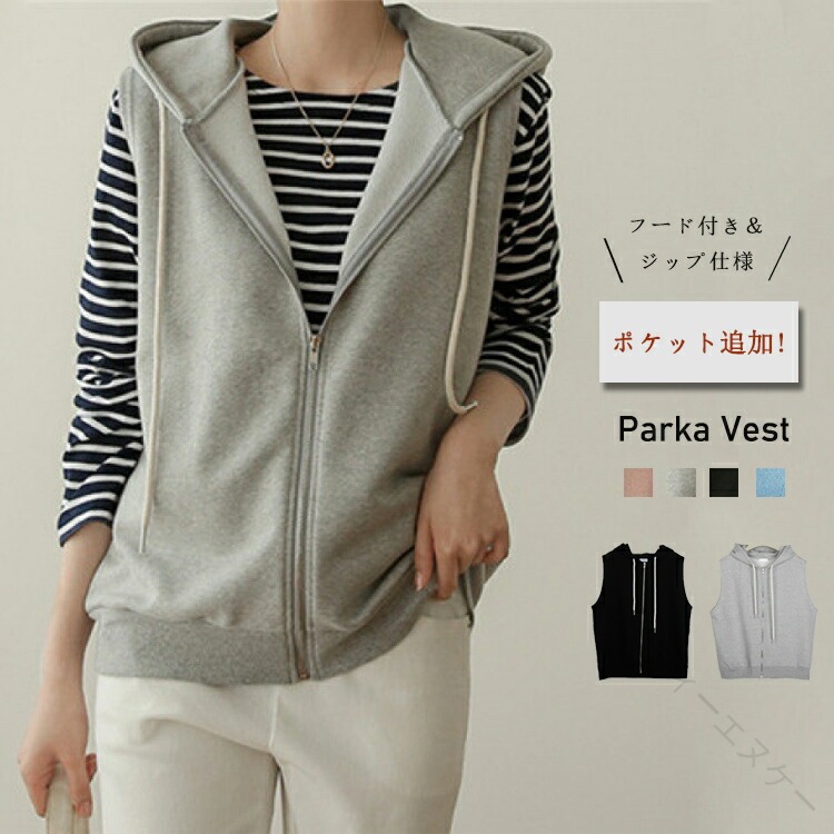 フード付き ベスト レディース パーカー ノースリーブパーカー スウェット パーカーベスト ジレ ジップアップ ファスナー 大きいサイズ トップス アウター 春 秋冬 重ね着
