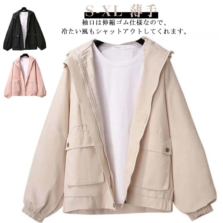 アウター レディース 春コート マウンテンパーカー フード付き 長袖 ジャケット ブルゾン 薄手 防風 春秋 体型カバー カジュアル ジャンパー ショート丈 秋服 春服 おしゃれ マウ ジップパーカー