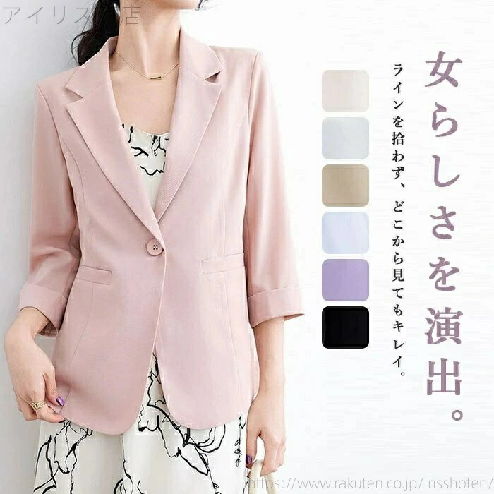 洗える 春夏 夏用 サマージャケット 長袖 アウター 初秋 レディース 薄手 7分袖 テーラード ショート丈 七分袖 コート