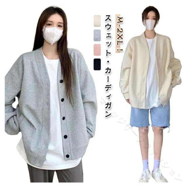 レディース トップス カーディガン カーデ 長袖 秋冬 スウェット スエット トレーナー 無地 シンプル 羽織り アウター ゆったり カジュアル