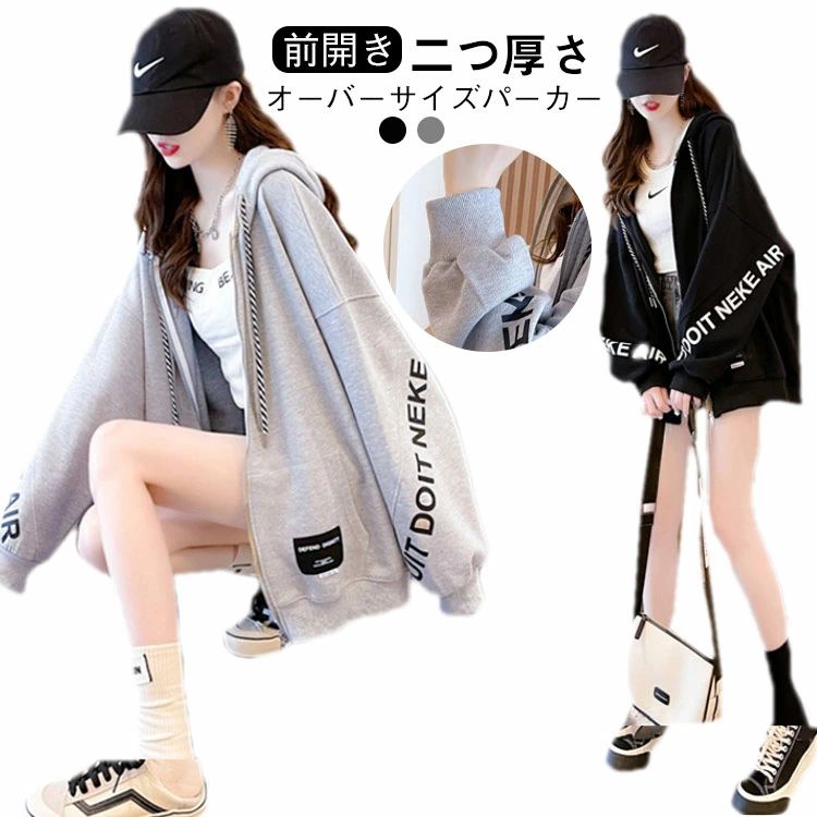 大きいサイズ パーカー オーバーサイズ ジップパーカー ジップアップ レディース フード付き アウター ゆったり カジュアル 厚さ選べる