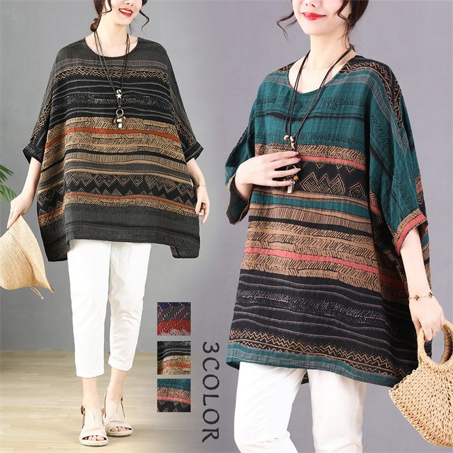 7分袖 ゆったり 大きいサイズ レディース シャツ チュニック 無