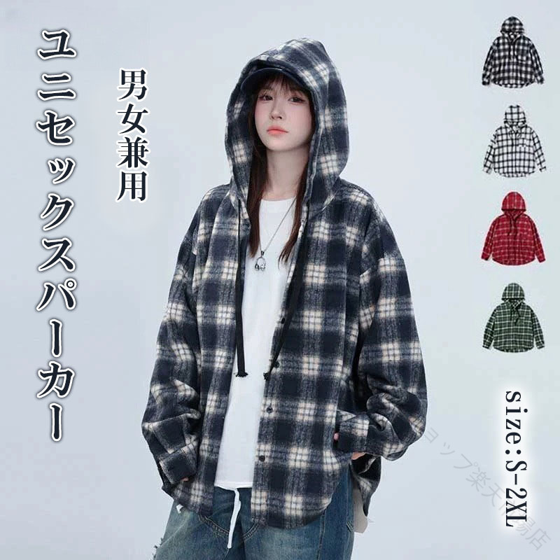 パーカー メンズ レディース ユニセックス 男女兼用 長袖 フード付き チェック柄 シャツ スウェットパーカー ルーズスタイル 厚手 大きいサイズ 春秋 カジュアル 通勤 普段着 原宿系 ファッ 通学