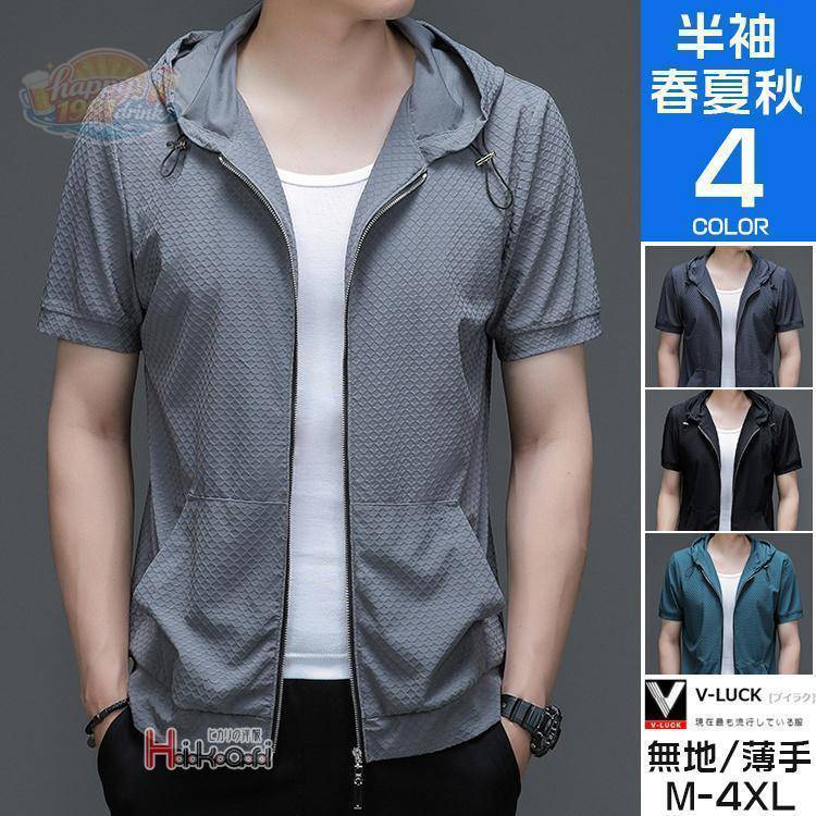 半袖パーカー メンズ ジップアップパーカー 羽織 冷感 無地 薄手 フード付き 半袖 スポーツ ス 夏服 プルパーカー