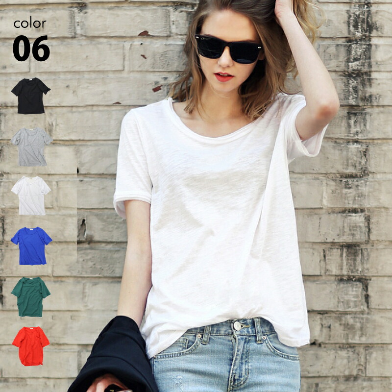 シャツ レディース 女性 半袖 シンプル ベーシック シャツ 着痩せ 無地 ネック 春 夏 トップス カットソー 体型カバー