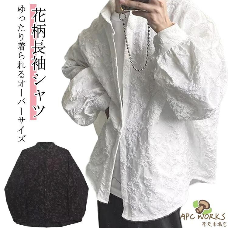 長袖 シャツ メンズ 大きいサイズ ボタニカル柄 カジュアルシャツ 総柄 花柄 黒 白 ストリート系 モード系 ブラック ホワイト トップス ダンス衣装 原宿系 春夏秋冬 大きめ オーバーサイズ 韓国