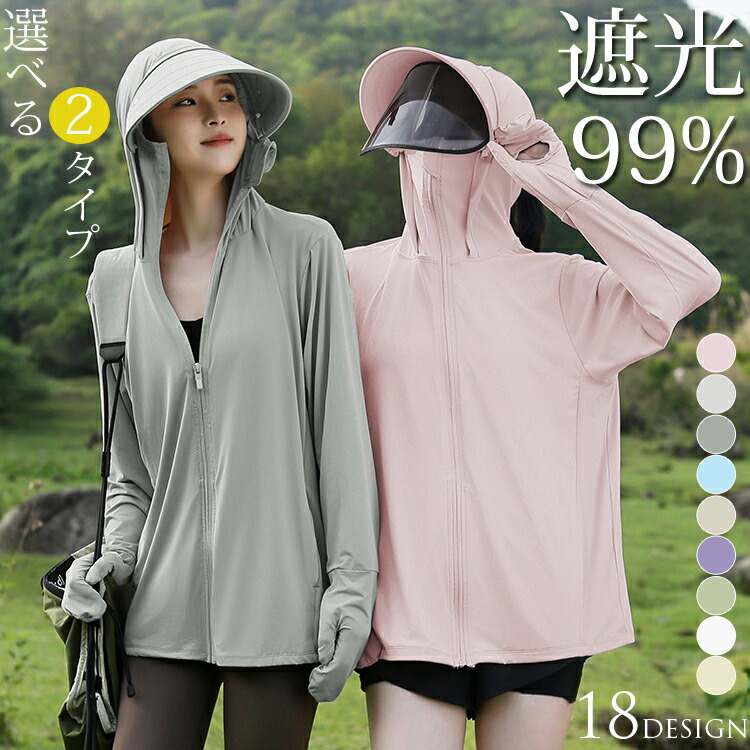 UV パーカー 冷感 -5℃ レディース UVカット 長袖 ラッシュガード 遮光 UVカットパーカー 2タイプ 指穴 取り外し つば サンバイザー 日焼け防止服 トップス 手袋 冷感素材 吸 アウター