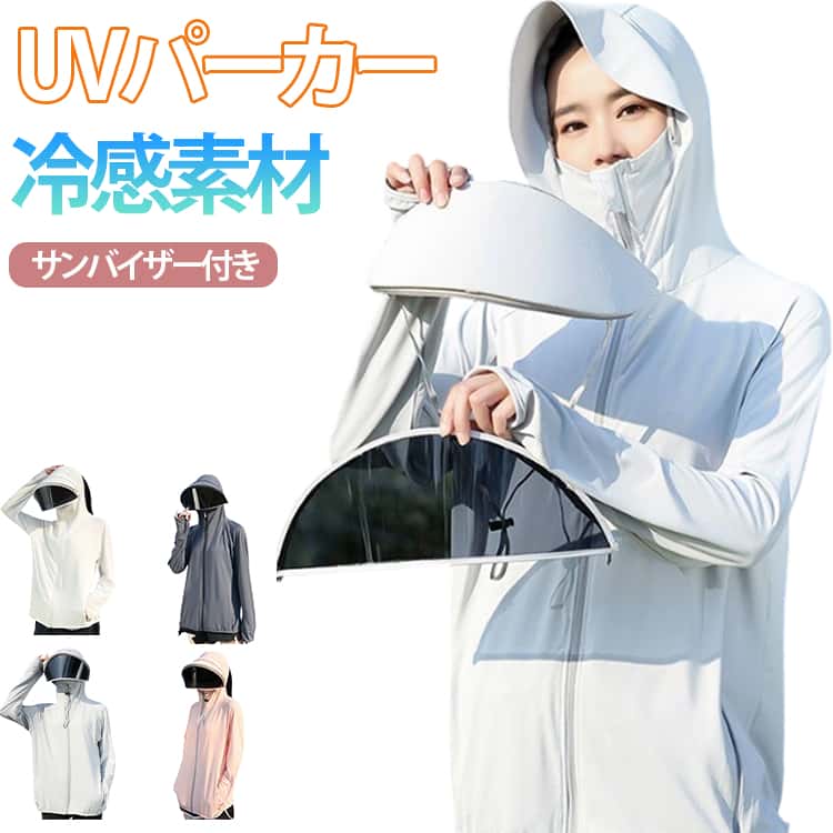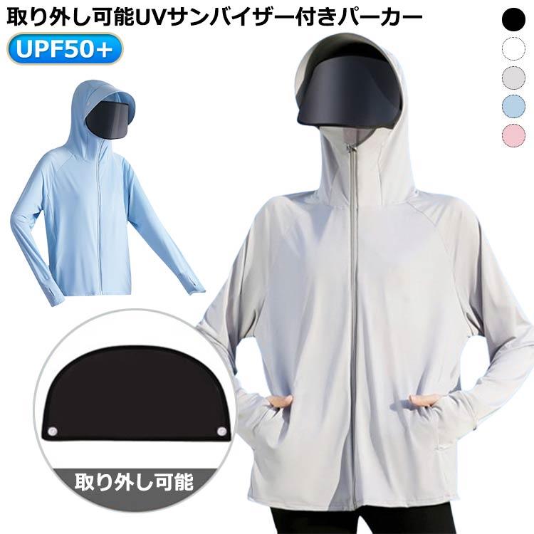 日焼け止め服 接触冷感 パーカー サンバイザー付き 体型カバー 吸汗速乾 50+ 薄手 通気性 自転車用