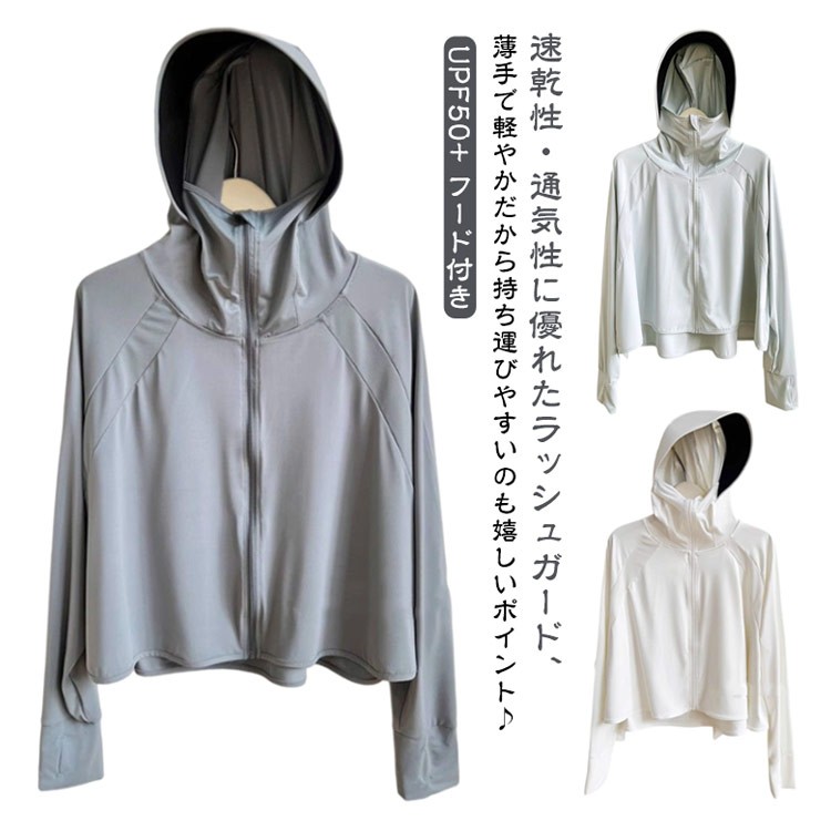 日焼け止め パーカー レディース フード付き フェイスカバーラッシュガード UVカット