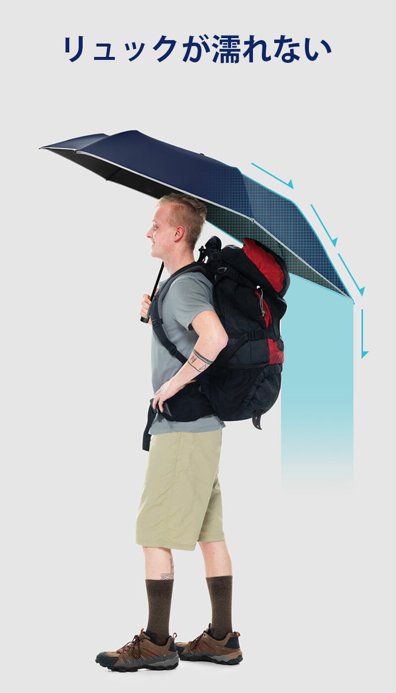 折りたたみ傘 後ろが長い 晴雨兼用 夜光反射材 傘 大きい メンズ レディース 雨傘 遮光 uvカット バックパック 背中が濡れない 通勤 通学 おしゃれ 軽量 耐風 7本骨 傘袋ポケット 日傘