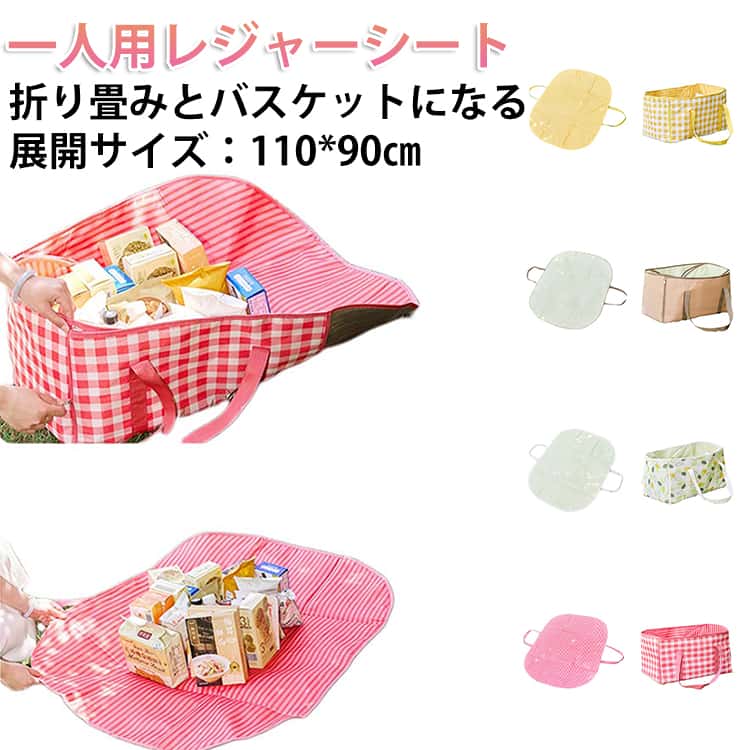 レジャーシート 厚手 一人用 折り畳み バスケットになる かわいい おしゃれ レジャーマット クッション アルミ 防水 軽い 洗える コンパクト 小さめ ピクニックシート ピクニックバスケット 収納