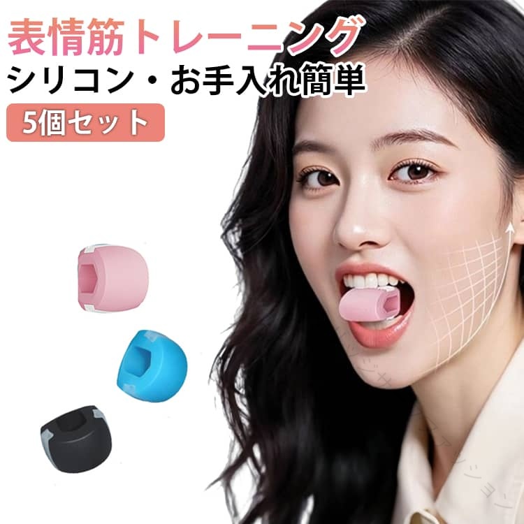 顔 の 筋肉 を 鍛える 表情筋 トレーニング フェイスライン 顎 あご エクササイザー 5 個 セット 美顔器 フェイス フィットネス ボール 筋 矯正 トレーニン 顔面