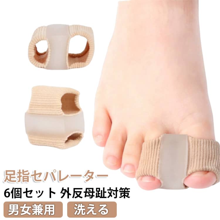 6個セット 外反母趾サポーター 足指サポーター 矯正器 分趾器 外反母趾 サポーター SEBS素材 シリコン製 柔らかい 通気性 男女兼用 洗える 足指セパレーター 寝る時 効果 足指矯正 左右 矯正