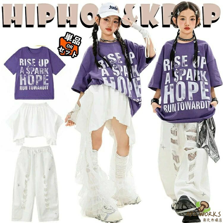 パープル ファッション 半袖 tシャツ キッズ ダンス衣装 セットアップ ダンス 衣装 女の子 ユニセックス衣装 ゆったり ピッタリ 男の子