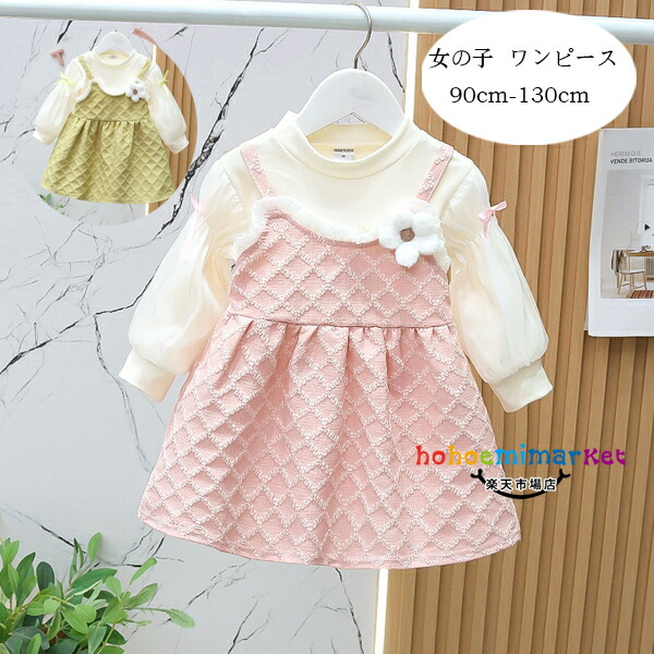 子供服 女の子 ワンピース かわいい 花柄 ピンク グリーン 春着 秋着 冬着 キッズ 長袖 おしゃれ パーティー ベビー服 通園着 通学着 プレ 幼児
