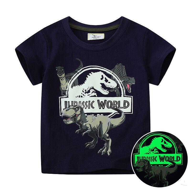 子供服 男の子 キッズ ボーイズ 夜光 蓄光 光る Tシャツ 半袖 トップス 98% 綿 恐竜柄 夏服 普段着 男児 カジュアル ファ 上着