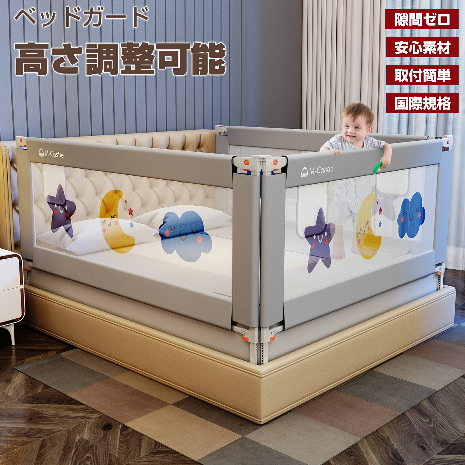 ベッドガード 赤ちゃん 転落防止 ハイタイプ 150cm 180cm 200cm 220cm 大型 子供 高さ調整可能 生地洗濯可能 洗える 取付簡単 ベッドフェンス 布団ズレ防止 安定 メ 落下防止