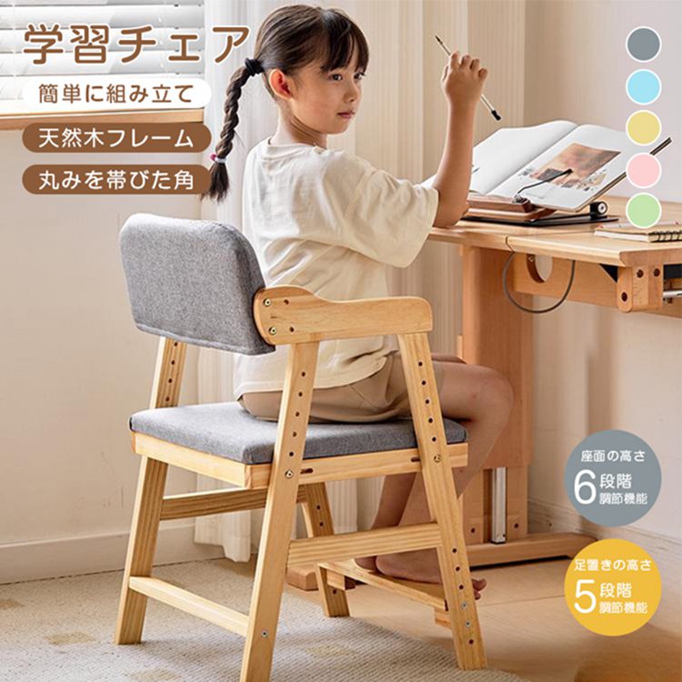 イス 学習チェア 子供部屋用 インテリア 要組立品 北欧風 幅45 高さ78 高さ調節 木製 ナチュラル リビング学習 集中力 ダイニング 食事 背もたれ付き キッズ