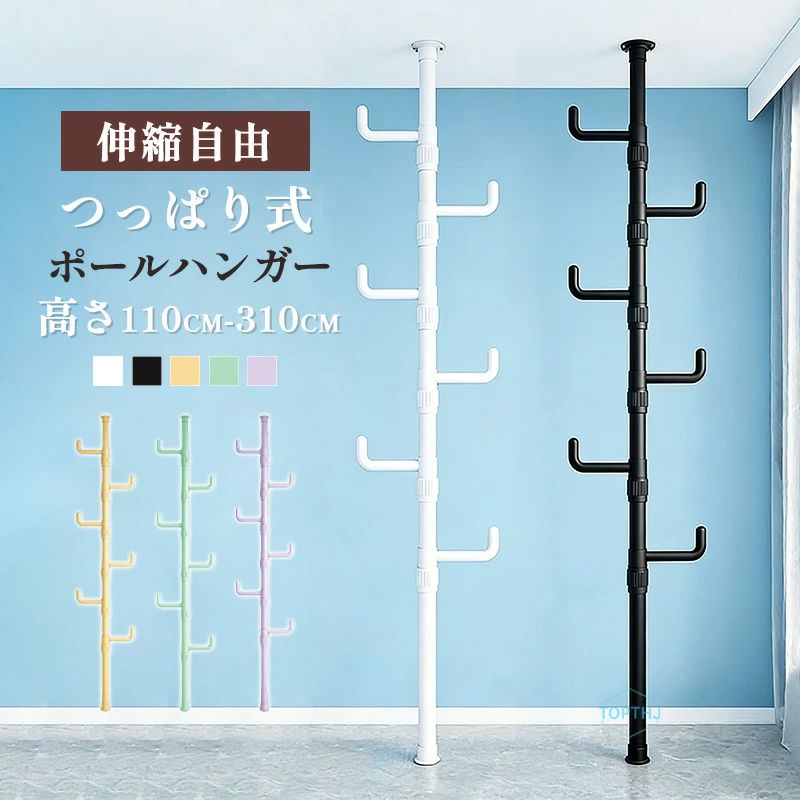 突っ張りポールハンガー つっぱりポールハンガー ハンガーポール 子供 ハンガーラック おしゃれ 玄関 突っ張り式 スリム 棒 コンパクトワンタッチ式 コートハンガー 強力 高さ調節 省スペース 春 棚