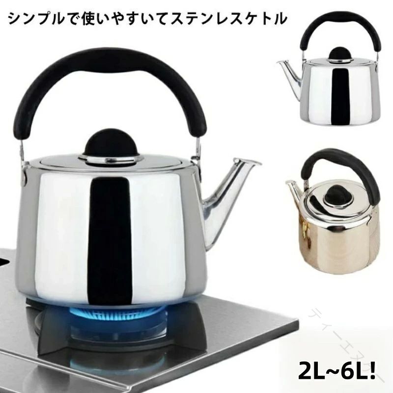 やかん ケトル 笛吹き ステンレス 直火 ガス 対応 家庭用 シンプル 使いやすい 2 から 6