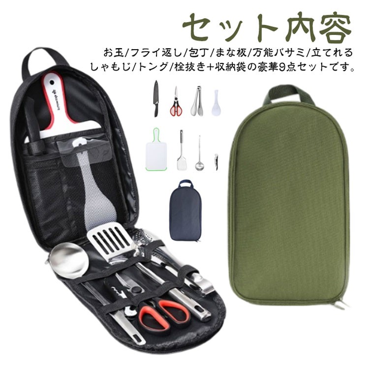 ステンレス キャンプ クッキングツール 9点セット 収納ケース付き アウトドア バーベキュー キッチンツール ソロキャンプ 調理器具