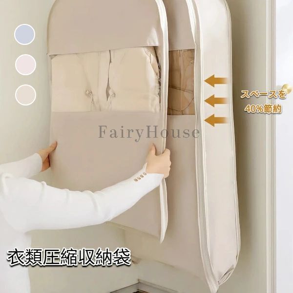 衣類圧縮収納袋 防塵カバー ハンガー収納可能 ダウンジャケッ
